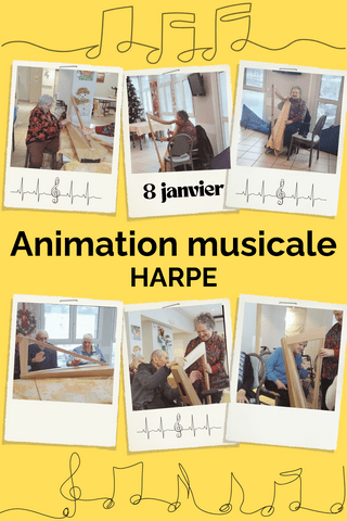 Le 08 janvier, une animation musicale autour de la harpe a été proposée aux résidents. Dès leur arrivée, les résidents se sont montrés curieux et intéressés par la découverte de cet instrument. Beaucoup d’entre eux avaient déjà entendu la harpe, mais n’en avaient jamais vu en vrai. L’animation a débuté par la présentation de l’instrument, suivie de l’interprétation de chansons connues. Les résidents ont rapidement reconnu les mélodies et plusieurs d’entre eux ont chanté, créant un moment convivial. Par la suite, chaque résident a pu essayer la harpe et tenter d’effectuer une mélodie. Les échanges ont été riches autour de souvenirs de bals que les chansons évoquaient. Ce temps musical a été apprécié par les résidents présents qui ont remercié chaleureusement l’intervenante.