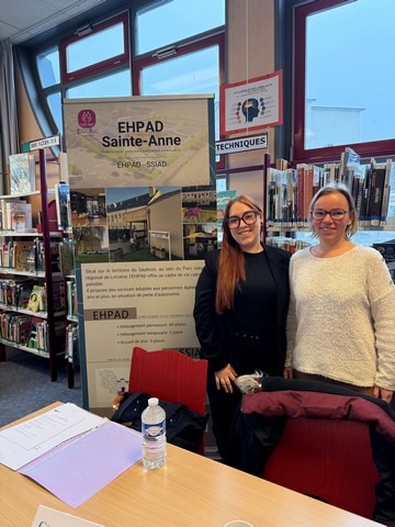 Début février, Marylène et Océane, infirmière et aide-soignante à l’EHPAD Sainte-Anne, ont participé au forum des métiers de la santé organisé par la cité scolaire Charles Hermite de Dieuze et la CPTS Moselle-Sud.