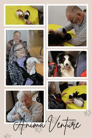 L’animation Anima’venture était de retour à Sainte-Anne, et vivement appréciée par les résidents y ayant participé. Lors d’une séance riche en bonne humeur, ils ont pu être au contact d’un chien ainsi que d’un lapin et de cochons d’Inde. C’est avec facilité qu’ils ont partagé un moment de détente à leurs côtés, et ont eu la possibilité de les caresser et de les nourrir.